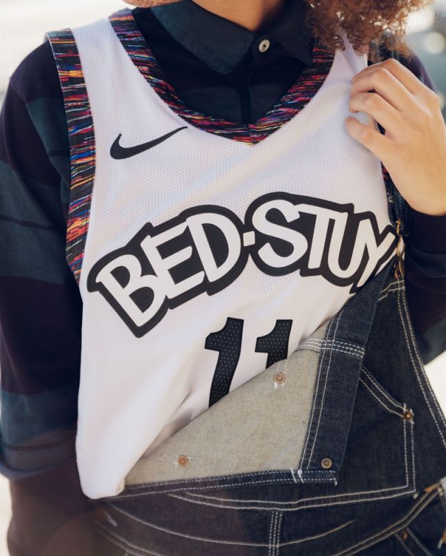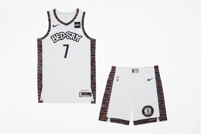 白色為主色的球衣胸前印有“BED-STUY”(Bedford-Stuyvesant的縮寫,為出生於布魯克林的已逝知名音樂人Notorious B.I.G.成長的街區),兩側的紋路則沿用了上賽季的圖案設計。