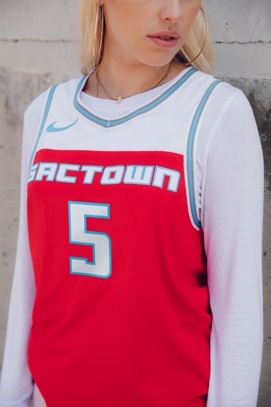 球衣採用了紅色與淺藍色的經典配色設計,胸口印有“Sactown”字樣。