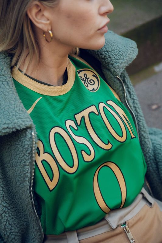 波士頓的城市版球衣以綠色為底色,細節處以蓋爾(Gaelic)文化中的字體編號樣式和特色塞爾提克紋飾點綴,向世人展示了這座城市悠久的愛爾蘭文化傳統。