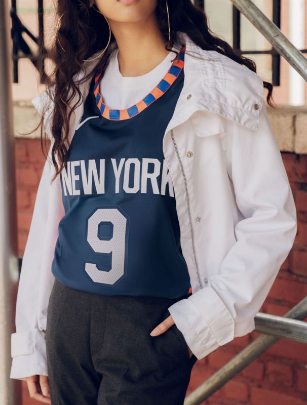 球衣側面的圖案象徵著從紐約林立的摩天大樓上望見的城市天際線。領口與袖口的細節則是對球隊歷史中的紐約尼克隊(Knickerbockers)時代致敬。