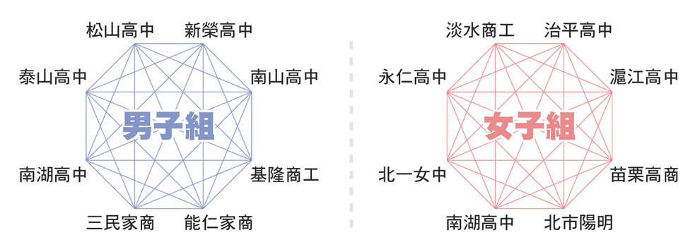 | 男子組準決賽&女子組複賽對戰戰績 | |||||||||||||||||||||||||||||||||||||||||||||||||||||||||||||||||||||||||||||||||||||||||||||||||||||||||||||