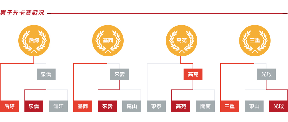 | 男子組四強對戰 | 女子組四強對戰 | ||||||||||||||||||||||||||||||||||||||||||||||||||||||||||||||||||||||||||||||||||||||||||||||||||||||